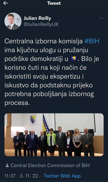 15. Ovako, ili je CIK falsifikovao fotografiju sa Rajlijem ili, pak, Rajli smatra da u BiH žive kreteni koji će prihvatiti njegovo licemjerno ponašanje i podršku instituciji koja ne postoji. Sem na papiru.