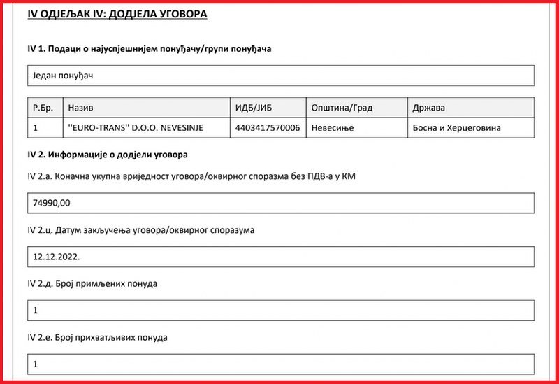 Smiješno ili utuživo?! Preduzeće iz sistema Elektroprivrede RS – Hidrolektrana Dabar, kojim u v.d. mandatu upravlja Slaviša Stajić, raspisale su tender za zimsko i tekuće održavanje pristupnih puteva 24. oktobra prošle godine. Procijenjen je na 75.000 (87.738 KM sa uračunatim PDV-om). Firma u kojoj je Laketa suvlasnica jedina je poslala ponudu. Da je nevesinjska odbornica bila sigurna da joj je posao zagarantovan govori podatak da se ponudila samo 10 KM jeftinije od procijenjene vrijednosti, 74.990 KM bez PDV-a. Tenderskog takmičenja sa konkurencijom nije bilo.