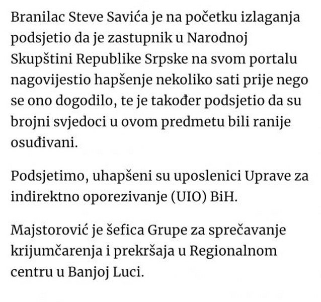 Zanimljivo da je na ročištu čestiti advokat Miljkan Pucar, koji zastupa osumnjičenog Steva Savića, imao više primjedbi na objave na mom blogu i aktivno praćenje ovog i drugih slučajeva u UIO, nego što je mogao prigovoriti sadržaju prijedloga za određivanje pritvora i djelima koja se osumnjičenima stavljaju na teret.