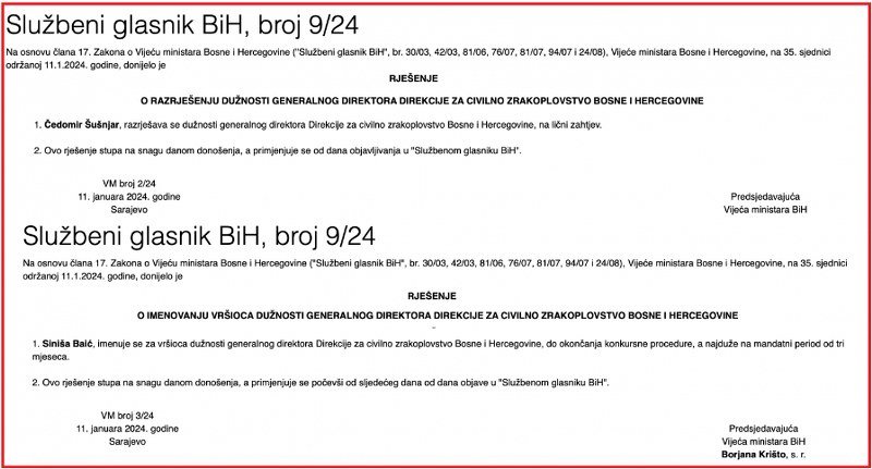 U poslednjih nekoliko sedmica na čelu Direkcije za civilno vazduhoplovstvo (BHDCA) promijenila su se čak tri direktora, a „hokejaške“ izmjene na čelu ove institucije ukazuju da se iza brda nešto valja, svakako ništa povoljno i dobro. Od 2009. godine, kada su ukinute entitetske i osnovana državna Direkcija i donesen novi Zakon o vazduhoplovstvu BiH, po nacionalnom ključu na čelu su srpski kadrovi. Čudne stvari počele su da se dešavaju u januaru ove godine kada je Čedomir Šušnjar podnio ostavku na mjesto generalnog direktora Direkcije. I to cijelu godinu dana prije isteka mandata. Savjet ministara BiH je Šušnjara na tu poziciju imenovao 24. februara 2021. godine, na mandatni period od četiri godine.