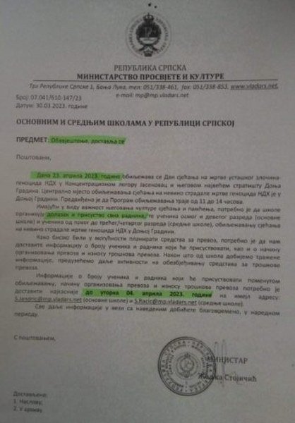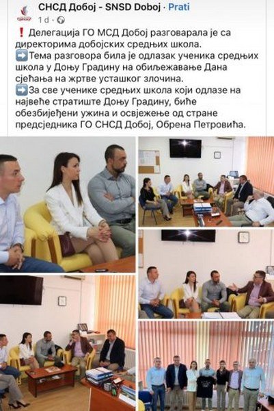 Danas je ispao veliki skandal, jer su djeca i učenici zloupotrijebeni u partijske svrhe, jer je Dodik želio da pokaže lažnu snagu, drži neprimjeren partijski govor na pomenu žrtvama genocida pred masom okupljenih, pa je svim direktorima osnovnih i srednjih škola u Republici Srpskoj naređeno da popišu učenike i dovedu ih u Donju Gradinu, ali većina je džaba krenula na put jer nisu uspjeli stići do odredišta.