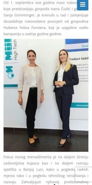 Sanja Griminger je mlada pravnica koja od 2017. godine radi u njemačkom Milbaueru i koja je prošle godine postavljena na čelo filijale Milbauera u Banjaluci.