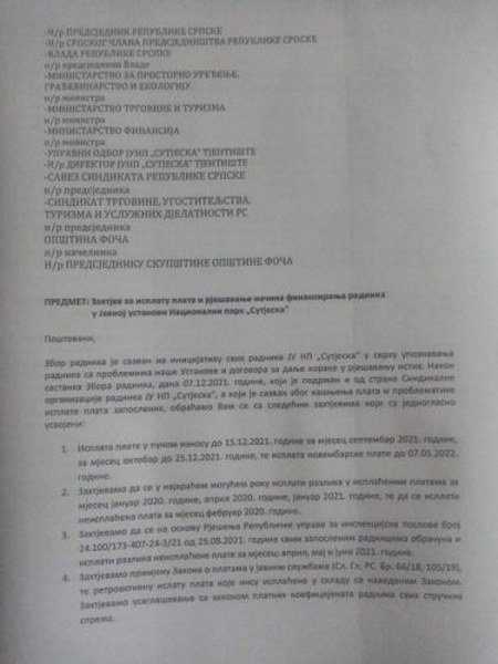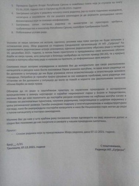 Detaljnije u Dopisu koji su uputili radnici i sindikati..