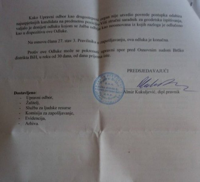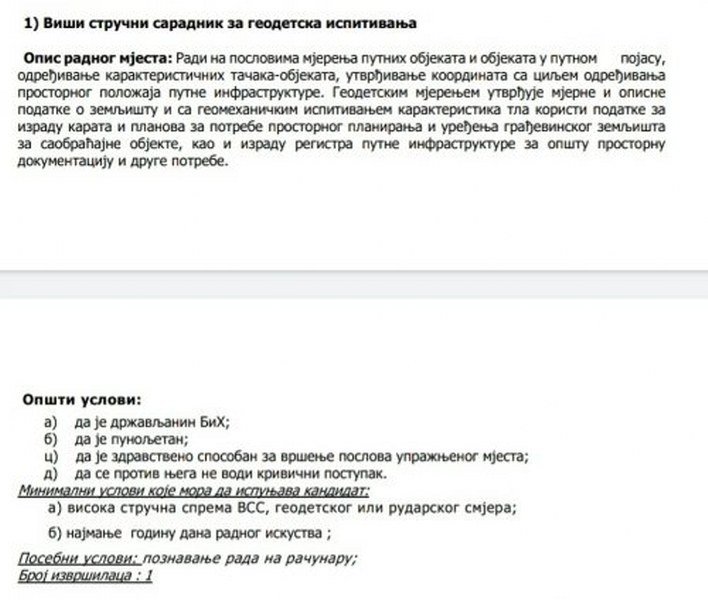 Mladi inžinjer geodezije iz Bijeljine Minja Maunaga konkurisao je na oglas za posao i radno mjesto višeg stručnog saradnika za geodetska ispitivanja koji je raspisalo Javno preduzeće Putevi Brčko distrikta.