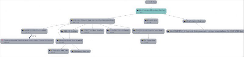 „Infinity media“ je kćerka firma grupacije „Infinity International Group“ u čijem je sastavu i javnosti po tenderima poznati „Prointer ITSS“, a koja se veže za porodicu srpskog člana Predsjedništva BiH i lidera SNSD-a Milorada Dodika.