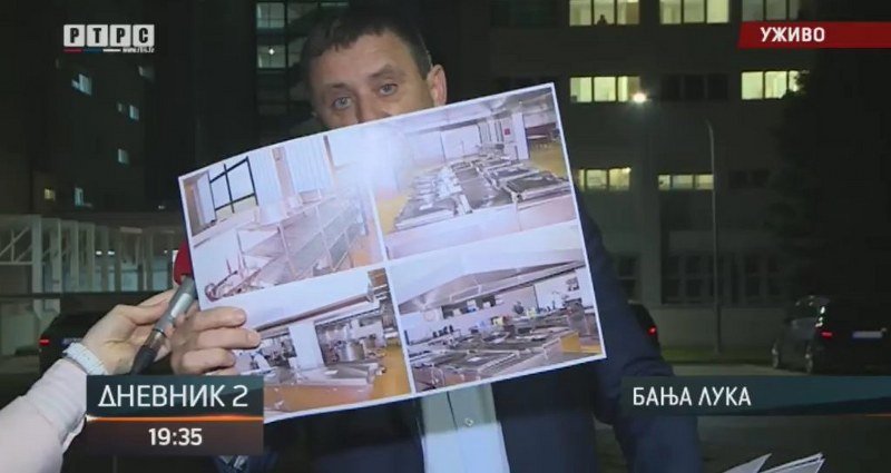 Đajić je potom istakao da je uslikani dio zapravo dio kuhinje zapravo “prljavi” dio kuhinje gdje se unosi i pere hrana, dok je onaj gdje se hrana priprema u stvari uredan i osavremenjen, a sve je to prikazao na spremnim i unaprijed isprintanim fotografijama koje je prikazao u kameru RTRS-a.