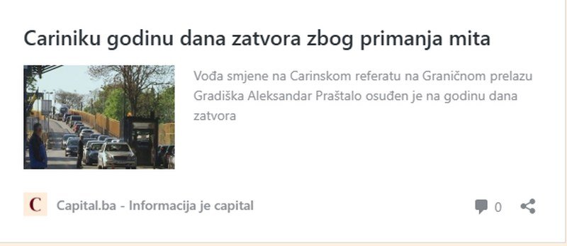 Prije dva dana ovaj sud je osudio vođu smjene na Carinskom referatu na Graničnom prelazu Gradiška Aleksandra Praštala na godinu dana zatvora i novčanu kaznu od 35.000 KM zbog primanja novca i to 200 evra da ne izvrši carinjenje robe, o čemu je CAPITAL pisao.