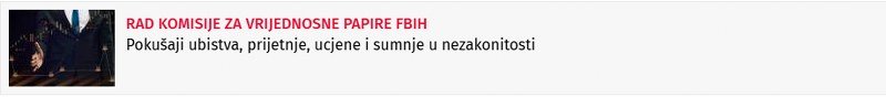 „Sve više se potvrđuje percepcija da ni članovima Komisije, niti pojedinim zaposlenicima nije prioritet zaštita tržišta i njegov razvoj, već rješavanje predmeta selektivno, u funkciji ličnih i interesnih koristi, bez uvažavanja zakonskih načela. U takvom sistemu, tržište kao javno dobro postaje kolateral pojedinačnih pogodbi. Tržište kapitala, koje bi u uređenim sistemima trebalo biti stub transparentnosti i izvor razvoja, u FBiH je svedeno na margine interesa – djelimično i zbog toga što su ključne institucije povjerene nekompetentnim osobama izvan sektora, kroz interesnu i klijentelističku raspodjelu funkcija“, detalj je iz međunarodne analize tržišta kapitala u Federaciji BiH.