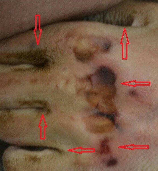 Gornju fotografiju šake načinjene tokom obdukcije postavljam samo kako bi mogli vidjeti kakve postmortalne promjene nastupaju od usmrćenja do obdukcije, a posebno ako je tijelo (ili pojedini dijelovi) bilo izloženo uticaju vode. Dlanovi prvi raguju na planu morfoloških promjena, ali i mjesta na kakva je djelovala mehanička sila (oštra ili tupa svejedno). Zato krim-tehničati karakteristične povrede fotografišu tokom uviđaja, a potom i tokom obdukcije sa novonastalim promjenama. Što u ovom slučaju očigledno nije omogućeno! Ili, bolje rečeno, nezakonito je spriječeno!