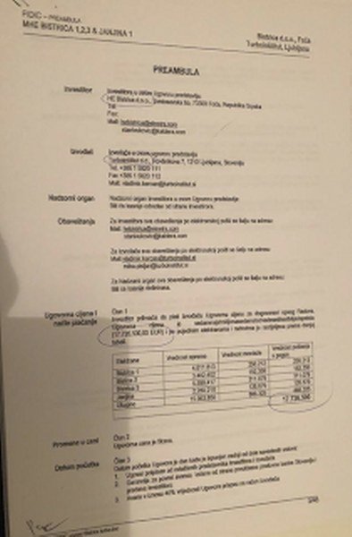 Tokom 2008. godine firma “HE Bistrica” koja je tada bila u vlasništvu Dodikovog tajkuna Milenka Čičića, odnosno njegove kriminalne firme “Kaldera” iz Laktaša i češke firme “BDY” iz Praga sklapa ugovor o nabavci opreme od slovenačke firme “Turboinstitut” d.d. Iz Ljubljane za isporuku opreme u vrijednosti 17.726.500 evra.