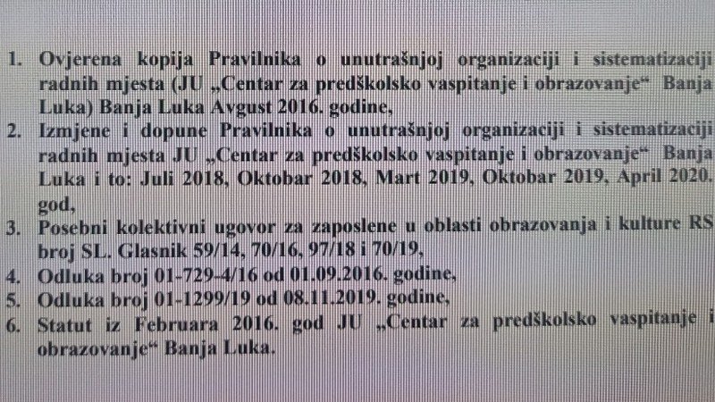 Brojnu dokumentaciju čini i informacija o finansijskom poslovanju JU „Centar za predškolsko vaspitanje i obrazovanje“ Banjaluka za vremenske periode: 01.01.-31.12.2016. godine, 01.01.-31.12.2017. godine, 01.01.-31.12.2018. godine, 01.01.- 31.12.2019. godine.