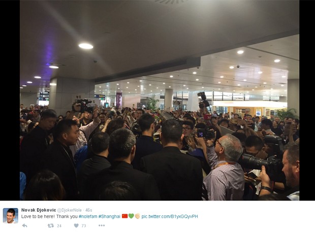 Đokovića je po dolasku u Kinu dočekao ogroman broj novinara i navijača. Iako je do sada svakako morao da se navikne na pažnju koju dobija širom planete, Đoković je osetio potrebu da se zahvali na prijemu i da još jednom, koristeći Tviter da se izrazi, istakne koliko voli da igra u ovom delu sveta.