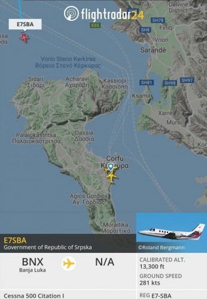 Avion „Cesna 500“, registarskih oznaka E7SBA, koji je po podacima sajta „Flajtradar24.com“ i dalje registrovan na Vladu Republike Srpske iako ga je pro-forme Vlada prodala i „provozala“ preko povezanih firmi kako bi se prikrili tragovi zloupotreba, jutros je ponovo poletio sa misterioznim putnicima do Grčke i ostrva Krf kako bi odabrane putnike odveo na ljetovanje.