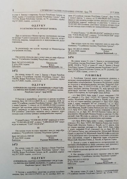 Sve navedeno objavljeno je u Službenom glasniku RS 74/20.