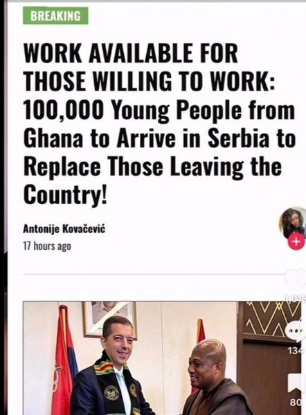 Njegov tekst se masovno deli po grupama u Gani, uz obećanje da Srbija „širom otvara vrata“ radnicima iz inostranstva.