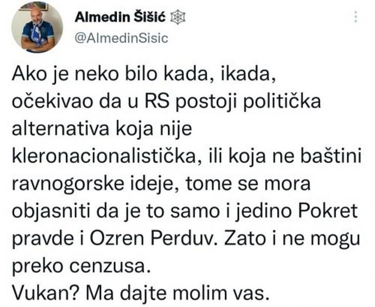 Upravo zbog takvog pogrešnog diskursa, velikih grešaka i upornog pljuvanja po istinski ispruženoj ruci pomirenja i normalnog suživotu vrtimo se decenijama u istom i ne možemo nikako da izađemo iz začaranog kruga.