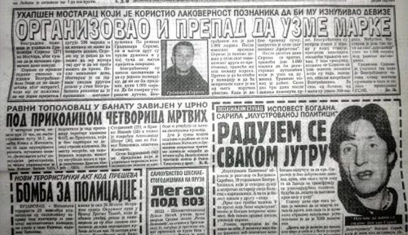 Policija je Gradimira Sprema uhapsila u Beogradu u kasnu jesen 2001. godine, nakon serije krivičnih djela koje je počinio, o čemu detaljno tada piše Politika ekspres i Večernje novosti. Tako nedeljna Politika ekspres od 2-og decembra 2001. godine, pod naslovom „Organizovao i prepad da uzme marke“ sa Spremovom fotografijom i podnaslovom da je uhapšen Mostarac koji je koristio lakovjernost poznanika kako bi im iznudio devize, detaljno piše kako je Spremo vršio krivična djela i varao prijatelja. Spremo je obećao poznaniku iz Beograda da će utjerati dug od 530 maraka, koji Beograđanin nije mogao da naplati, a potom je iznudio novac od svog prijatelja, tražeći mu u više navrata po 1000 maraka za ćutanje, kako ga Spremo ne bi policiji prijavio da je njega angažovao na vršenju krivičnih djela, prijeteći da će ga optužiti kako ga je angažovao da izvrši ubistvo!?