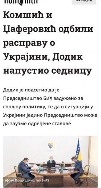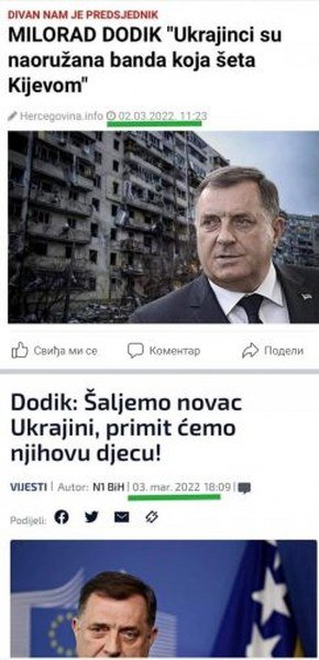 Nigdje se više ne pominju Putin i Lavrov, čak ni čuvena ikona iz Ukrajine, nema pomoći braći Rusima, a kao kukavica napustio je sjednicu Predsjedništva BiH kako ne bi iznio stav niti preduzeo neki potez kojim bi se spriječilo glasanje ambasadora i diplomata iz BiH, poput Svena Alkalaja u Ujedinjenim nacijama, protiv Rusije.