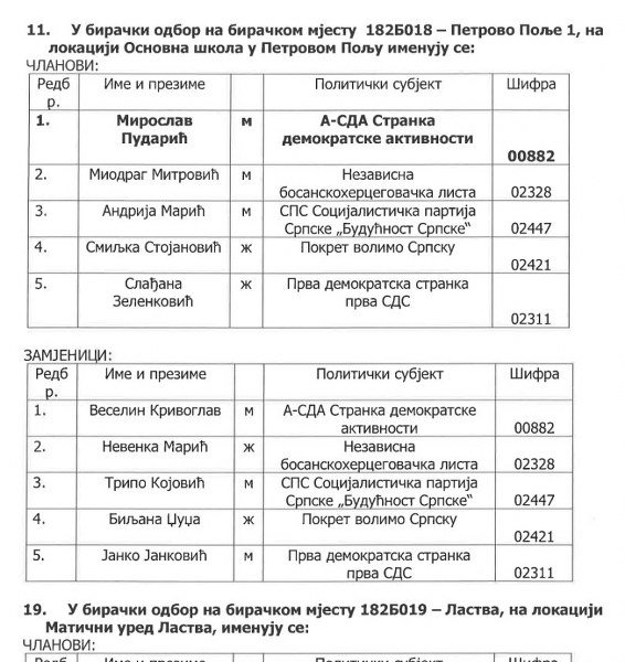 Gradska izborna komisija umjesto nestranačkih, uglednih ličnosti, pravnika i intelekualaca iz grada koji bi savjesno i pošteno radili posao, kako je to zakon i predvidio, postavila je za članove Biračkih odbora funkcionere vladajuće stranke i tako pokazala da nije Gradska već SNSD-ova izborna komisija.