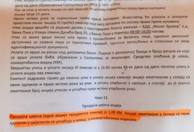 Da li će Komisija za hartije od vrijednosti Republike Srpske odoboriti ovu emisiju i na taj način svjesno kršiti zakon i učestvovati u kriminalnim radnjama????