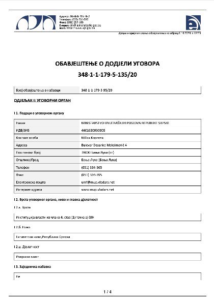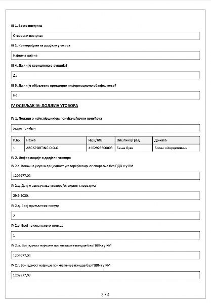 6. Ugovor je sklopljen 29.09.2020. godine, a prema njegovoj vrijednosti, jedan komplet košta 281,39 KM ili 144,30 evra.