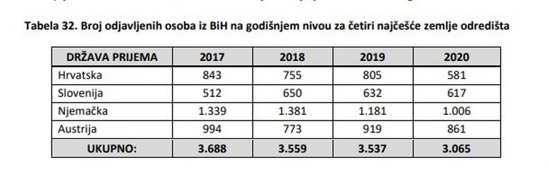Ovi podaci objavljeni su u dokumentu "Migracioni profil 2020 " koje je objavilo Ministarstvo bezbjednosti BiH. Ono što se može zaključiti jeste da je pandemija usporila ovaj trend ali ne u nekoj pretjeranoj mjeri.